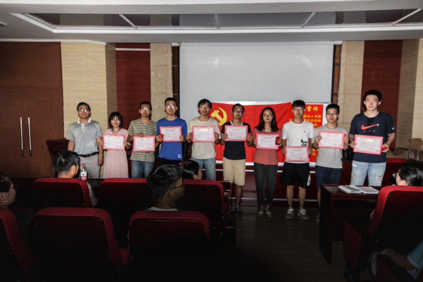 宣誓环节,在辅导员戴昀老师的领誓下,全体党员面向鲜红的党旗,重温入党誓词,再次庄严许下誓言。