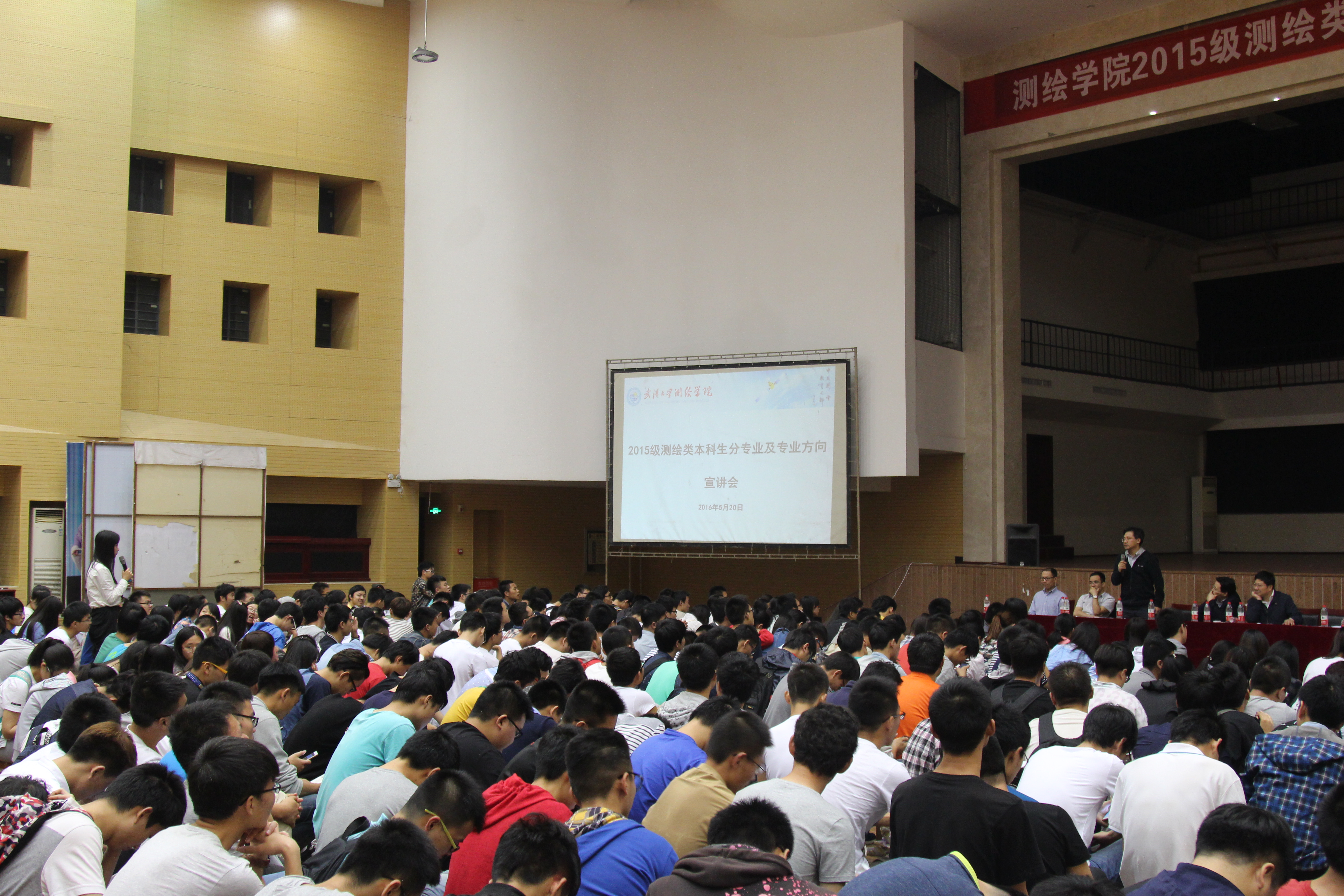 5月20日晚上,2015级测绘类本科生分专业及专业方向宣讲会在信息学部老员工活动中心召开。副经理邹进贵,精密工程与工业测量国家测绘地理信息局重点实验室主任徐亚明,测绘工程系系主任黄声享,空间定位与导航工程研究所所长王甫红,地球物理大地测量研究所所长罗佳,航天航空测绘研究所所长詹总谦,空间信息工程研究所副所长赵前胜,教学办公室主任汪志明,教学秘书秦咏梅,15级本科生辅导员傅露,2015级测绘类360余本科生参加宣讲会。会议由公司党委副书记王中全主持。